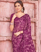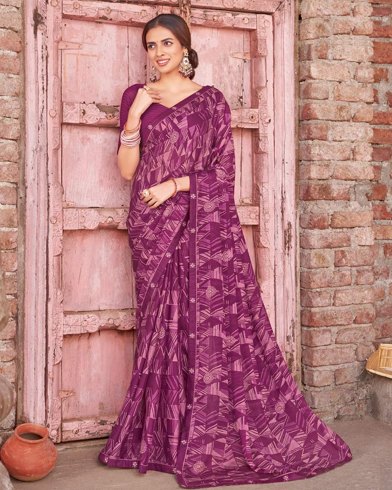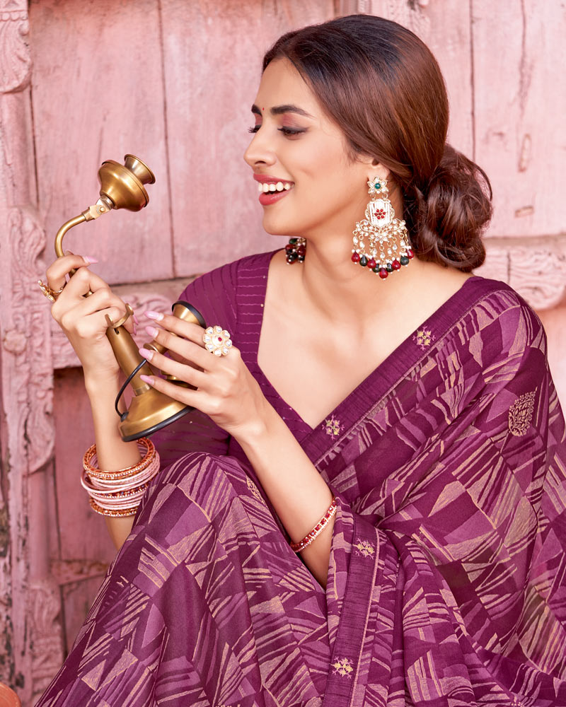 Vishal Prints Dusty Purple Printed Criva Crepe Saree With Fancy Border