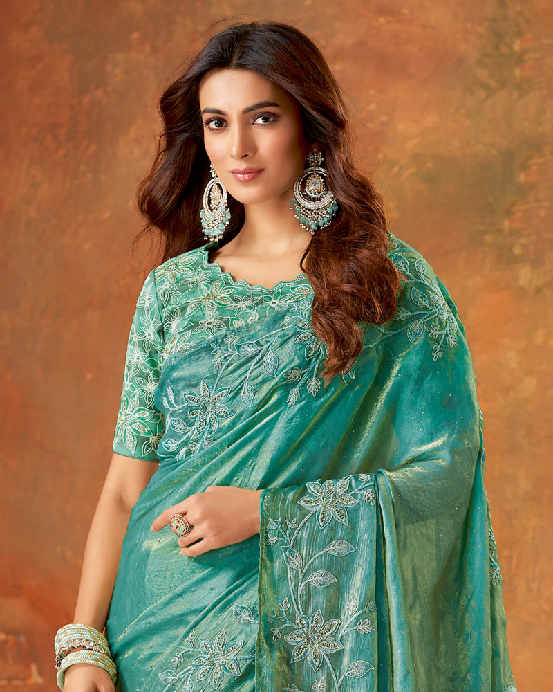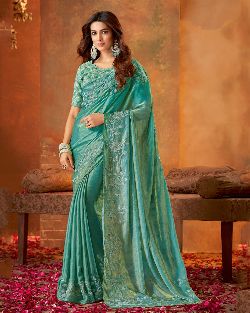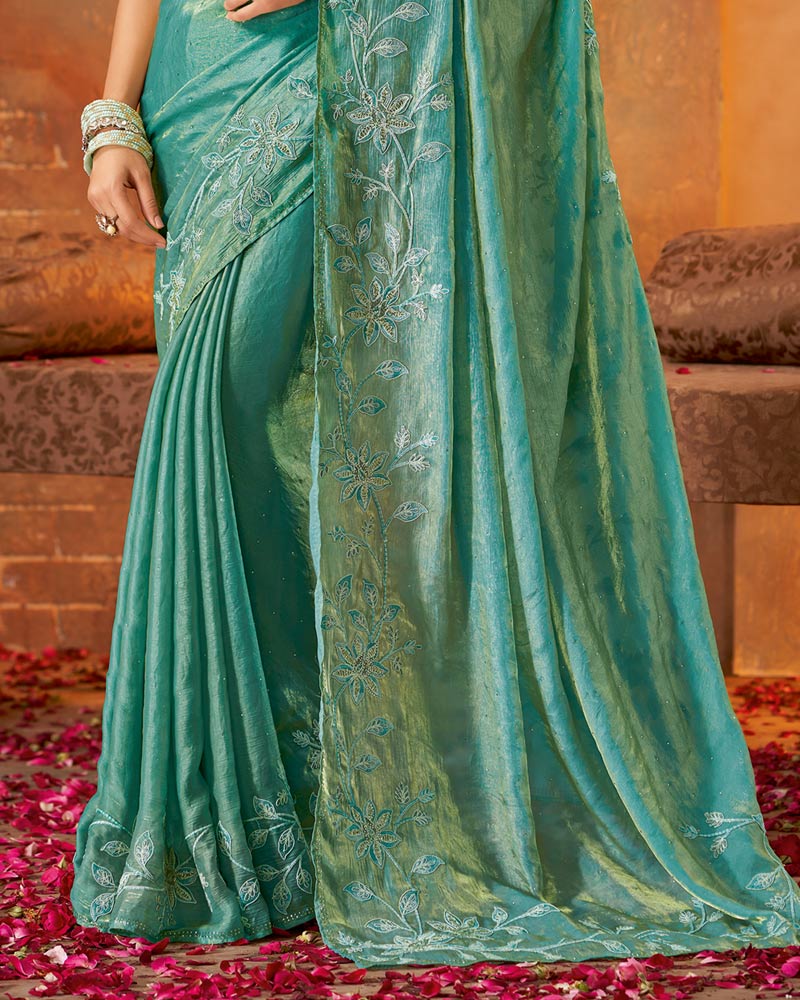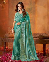 Vishal Prints Wedding Tropical Mehndi Theme Fancy Satin Saree