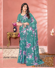 Vishal Prints Dusty Teal Green Digital Print Criva Crepe Saree With Fancy Border