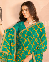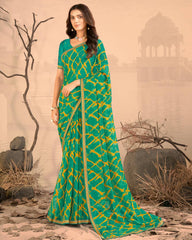 Vishal Prints Eucalyptus Green Printed Chiffon Saree With Fancy Border
