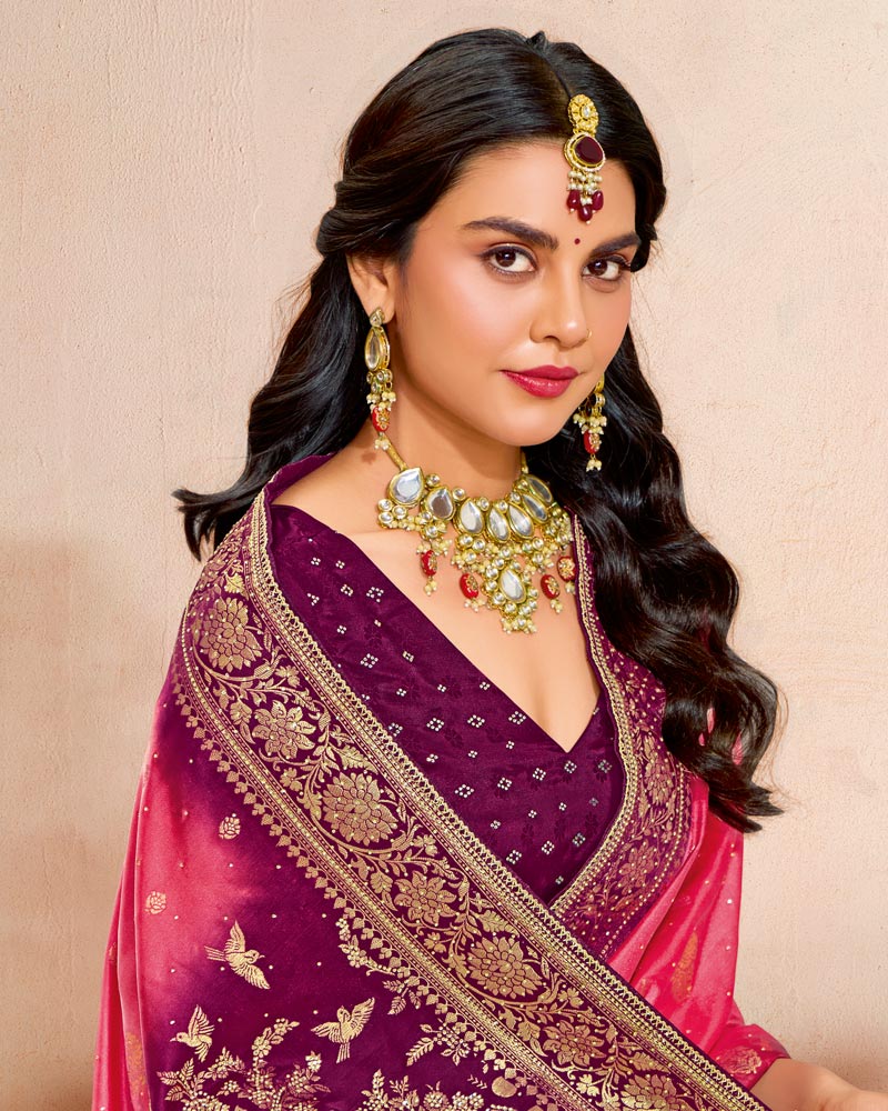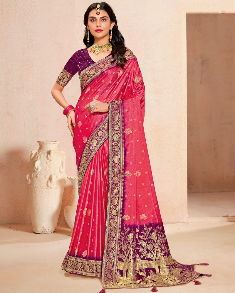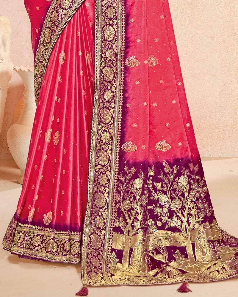 Vishal Prints Faded Pink Designer Satin-Dola Silk Saree With Diamond Work And Tassel