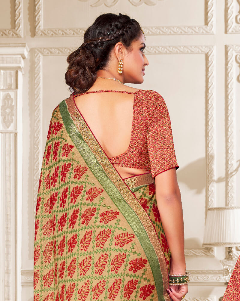 Vishal Prints Fawn Brasso Saree With Foil Print And Tassel