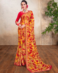 Vishal Prints Fawn Printed Chiffon Saree With Border