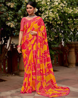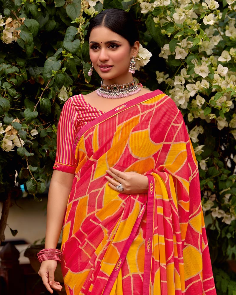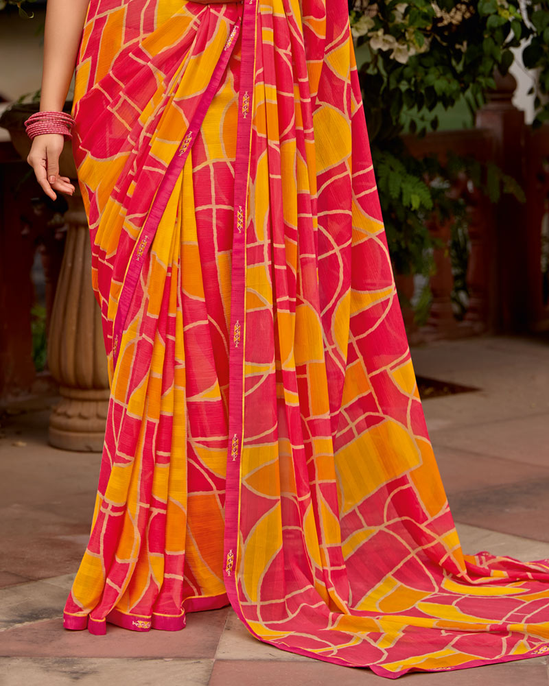 Vishal Prints Flamingo Pink Printed Chiffon Saree With Zari Border