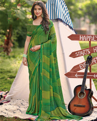 Vishal Prints Forest Green Printed Brasso Saree With Fancy Border