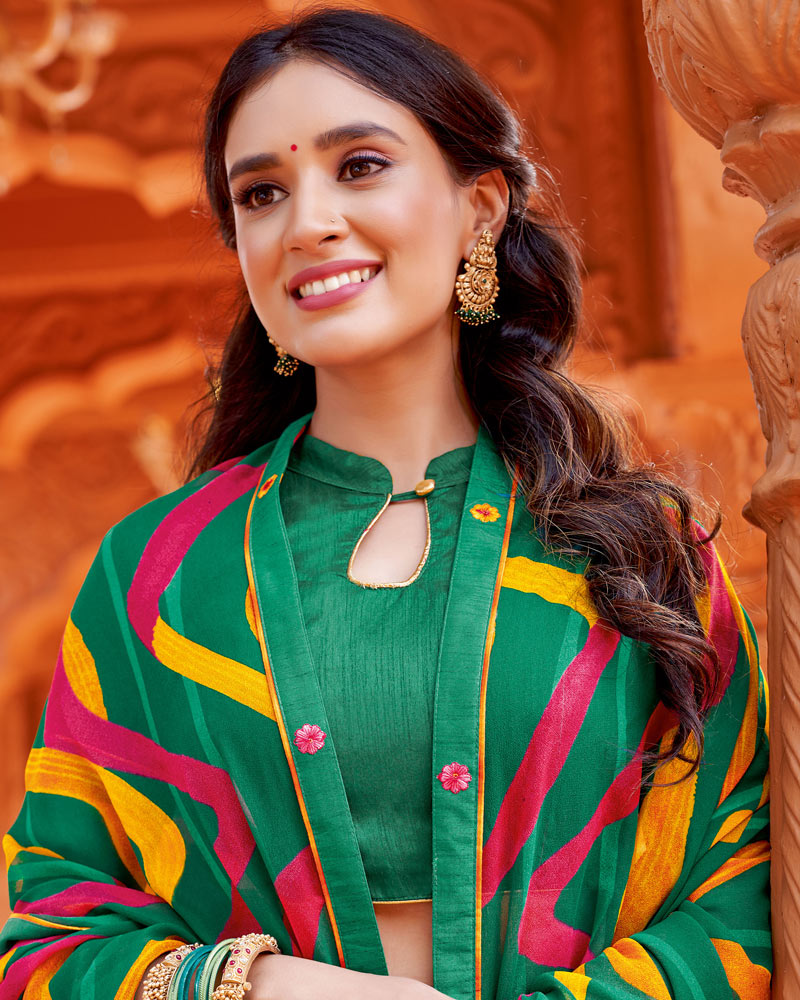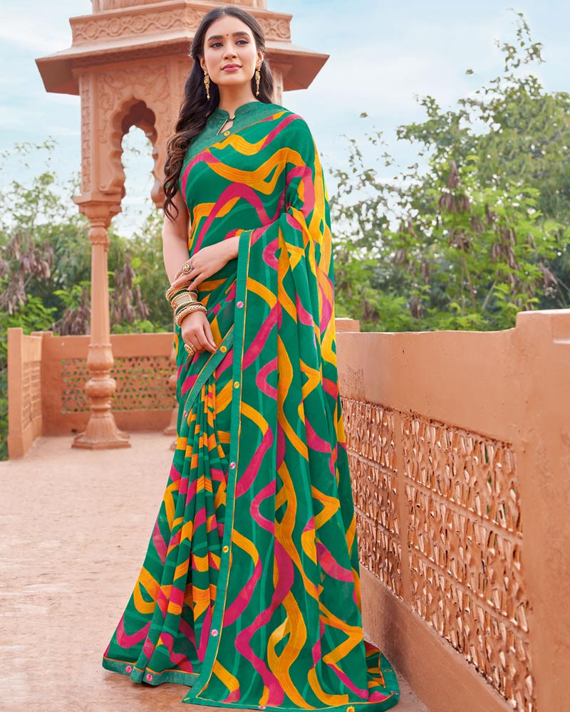 Vishal Prints Forest Green Printed Georgette Saree With Fancy Border
