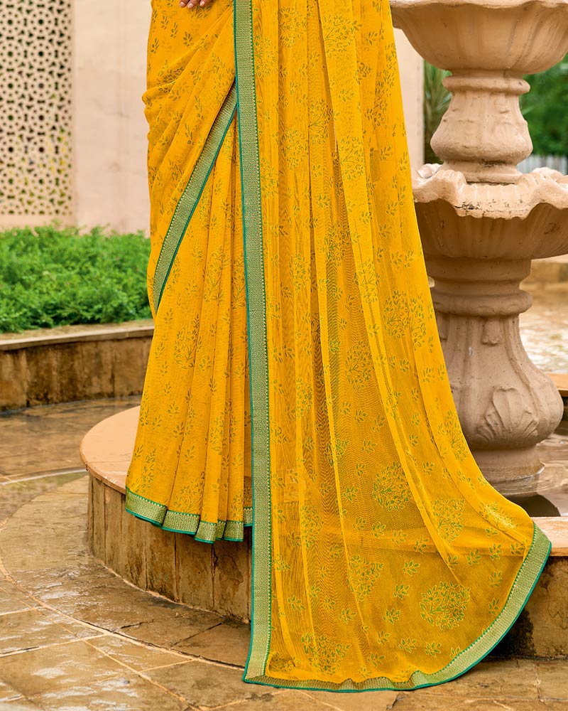 Vishal Prints Golden Yellow Chiffon-Brasso Saree With Zari Border
