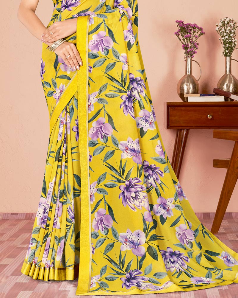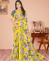 Vishal Prints Golden Yellow Digital Print Criva Georgette Saree With Fancy Border