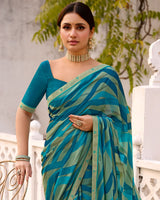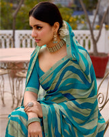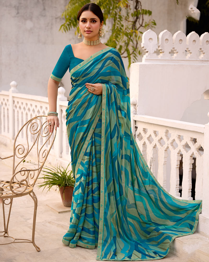 Vishal Prints Green Blue Printed Brasso Saree With Fancy Border