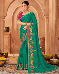 Vishal Prints Green Designer Chiffon Saree With Diamond Work And Fancy Border