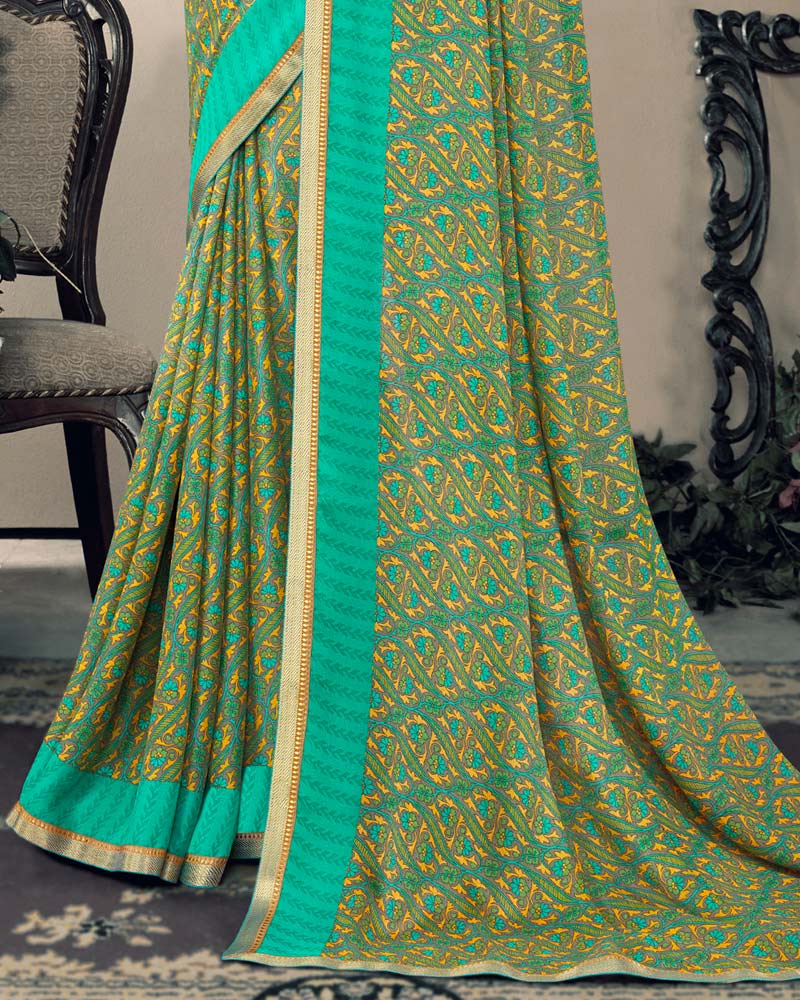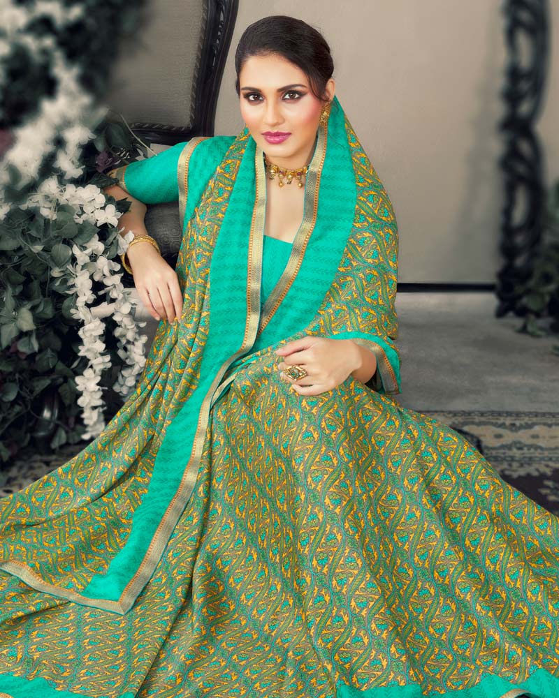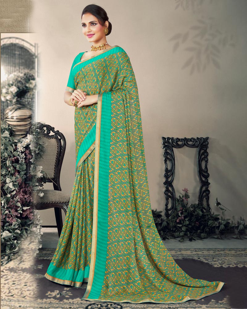 Vishal Prints Green Printed Criva Crepe Saree With Fancy Border