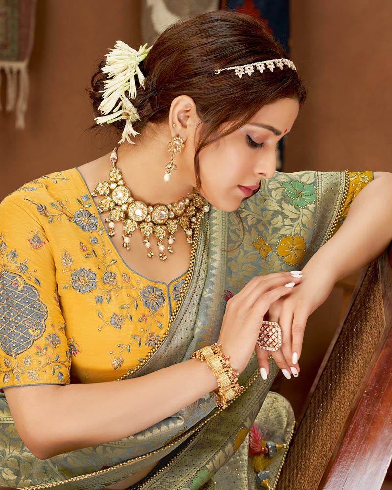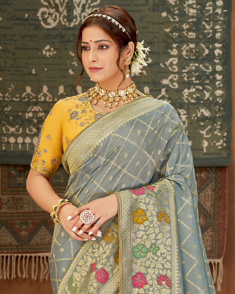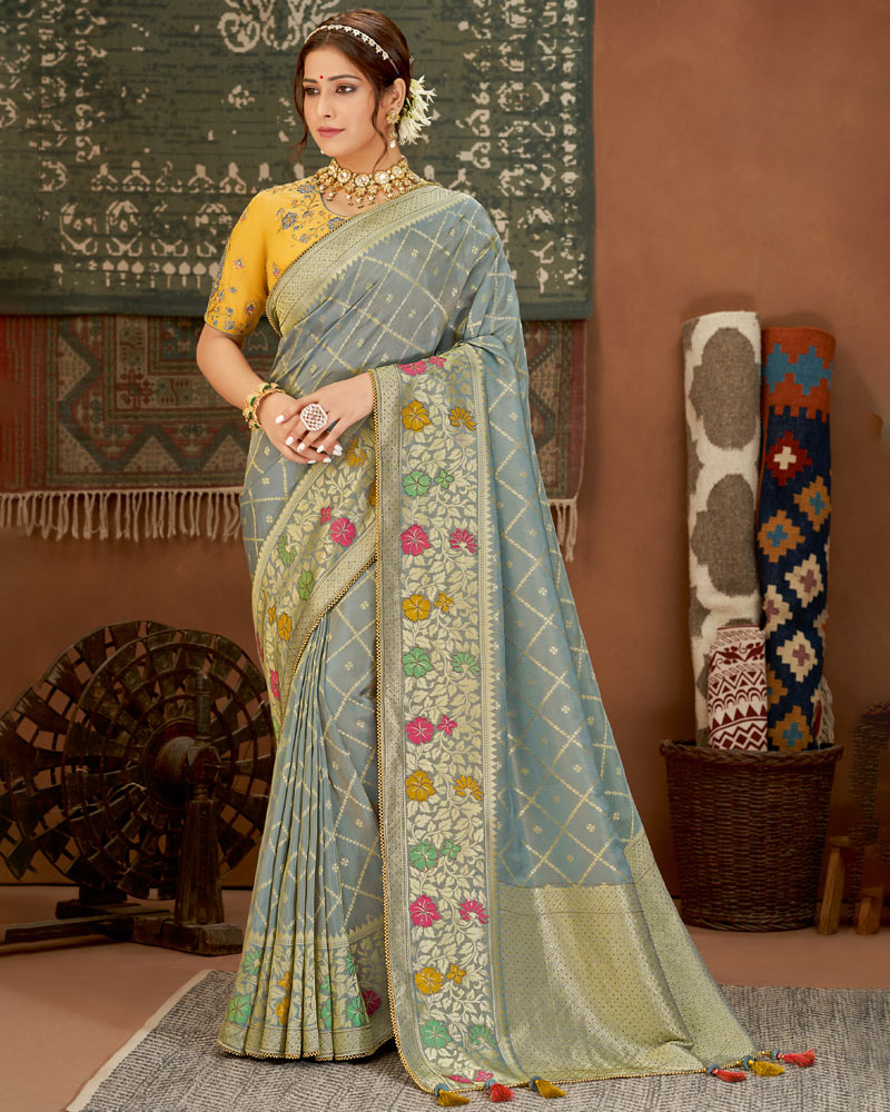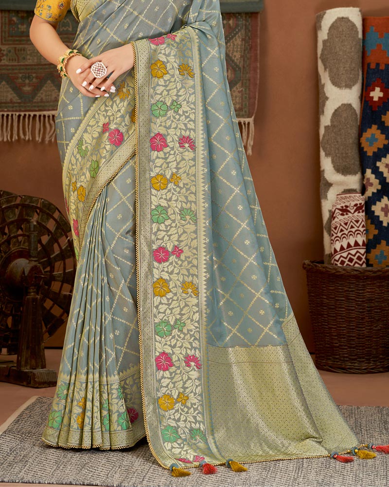 Vishal Prints Grey Art Silk Zari Weaving Saree With Diamond Work