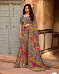 Vishal Prints Greyish Brown Printed Georgette Saree With Fancy Border