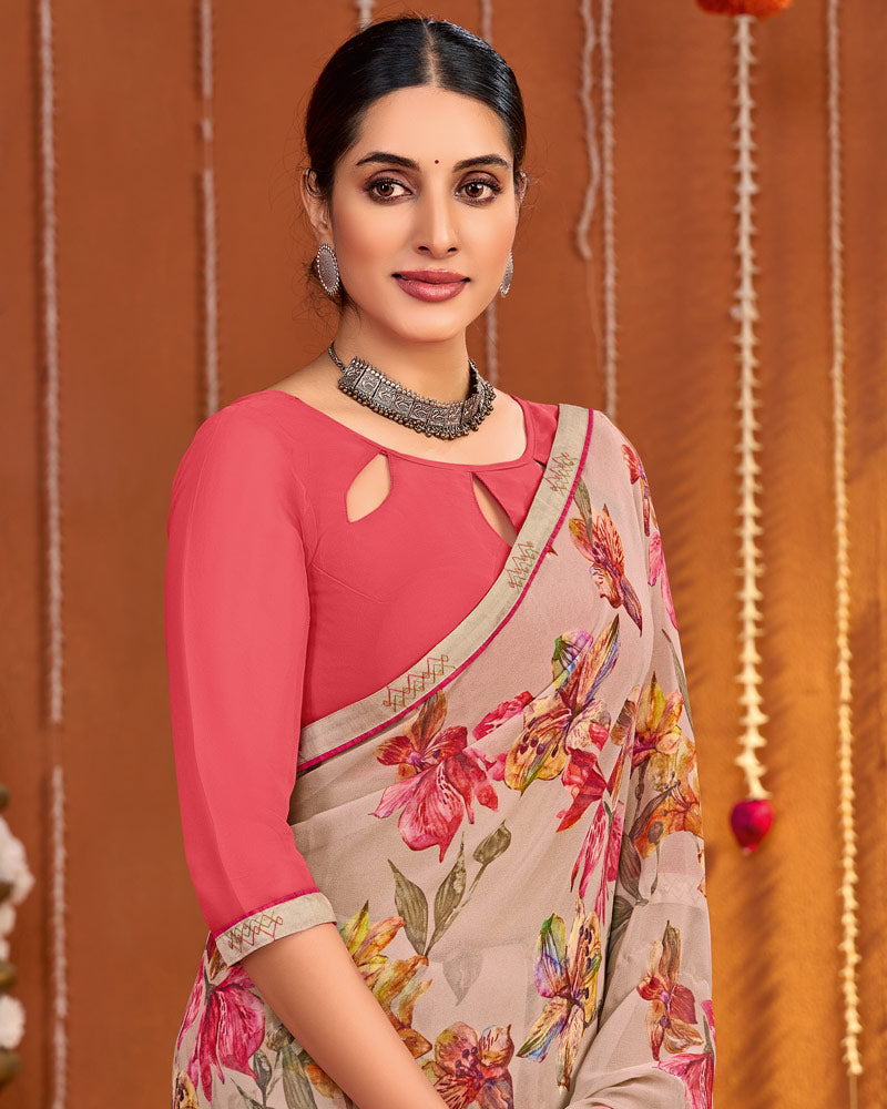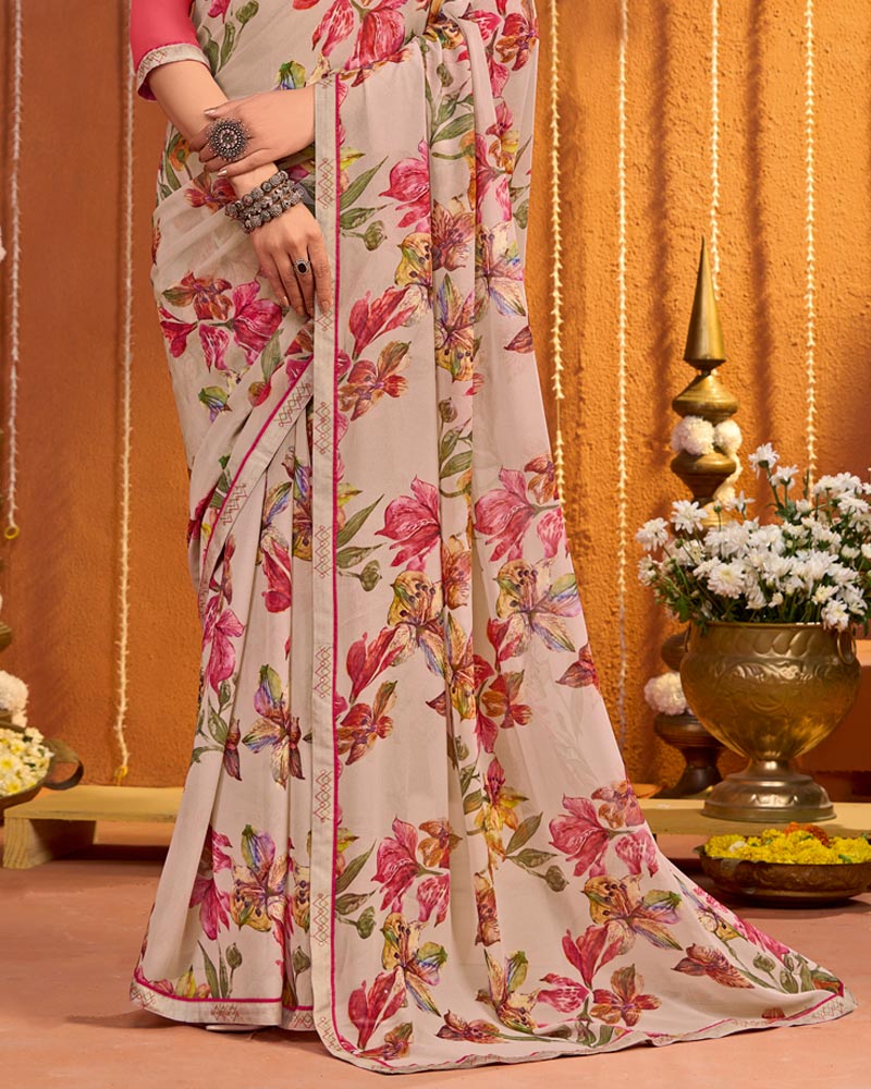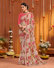 Vishal Prints Greyish Pink Digital Print Georgette Saree With Fancy Border