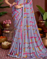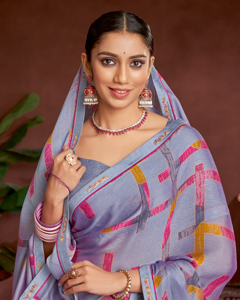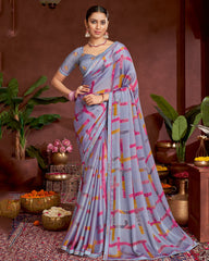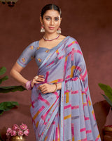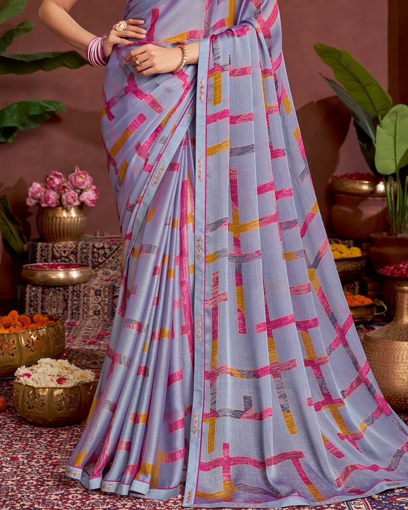 Vishal Prints Greyish Purple Printed Fancy Chiffon Saree With Border