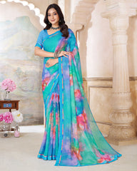 Vishal Prints Havelock Blue Printed Patterned Georgette Saree With Fancy Border