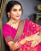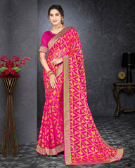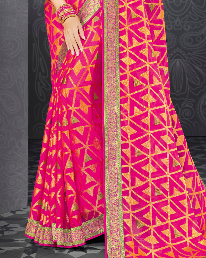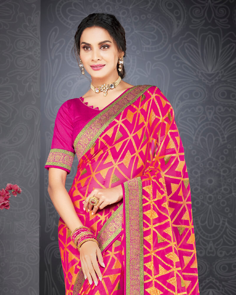Vishal Prints Hot Pink Brasso Saree With Jari Border And Foil Print
