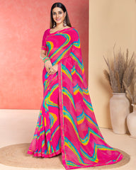 Vishal Prints Hot Pink Printed Georgette Saree With Fancy Border