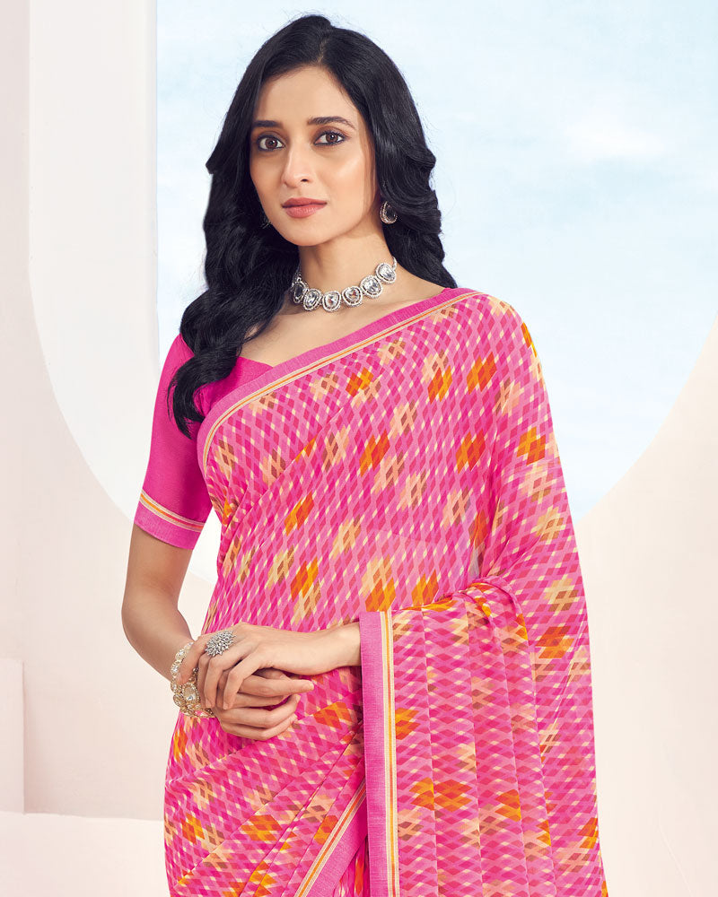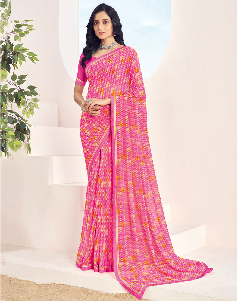 Vishal Prints Hot Pink Printed Georgette Saree With Fancy Border