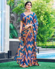 Vishal Prints Ink Blue Printed Fancy Chiffon Saree With Border