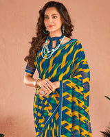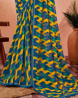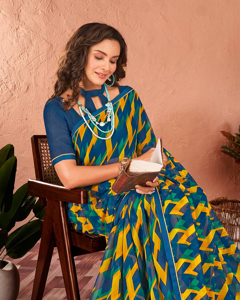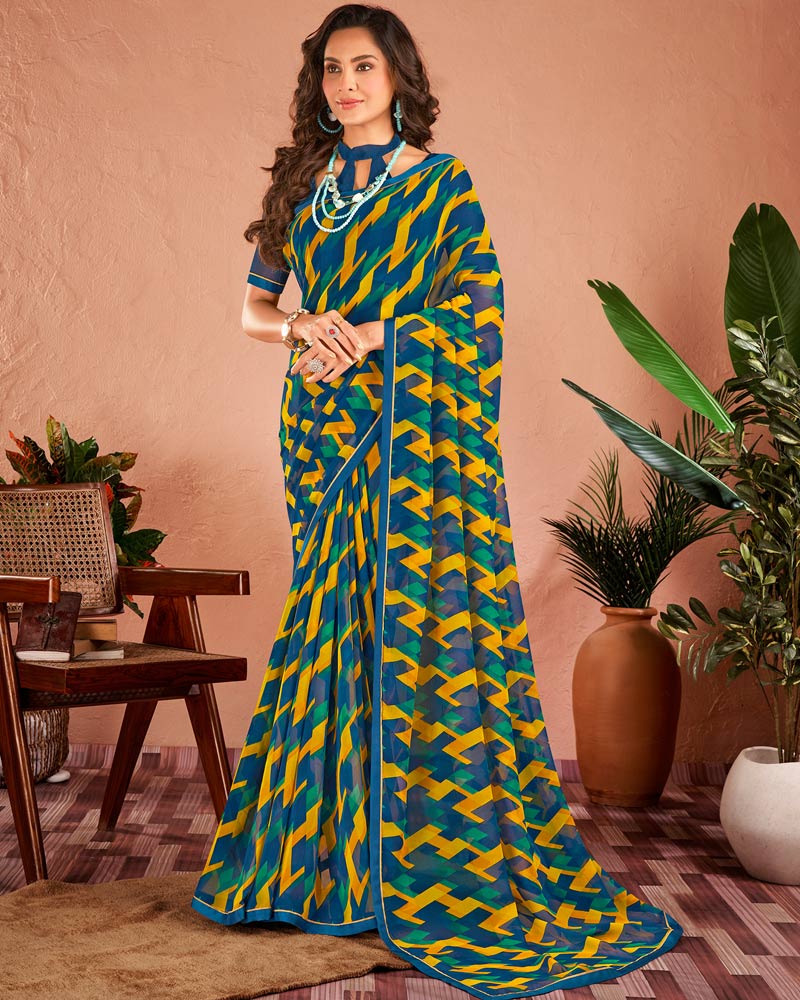 Vishal Prints Ink Blue Printed Georgette Saree With Satin Piping