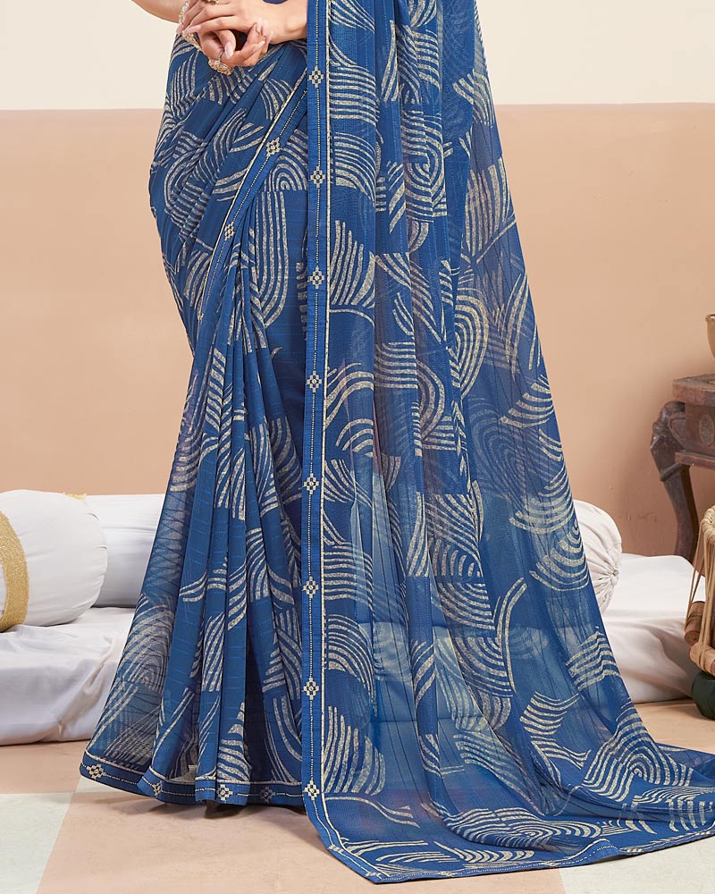 Vishal Prints Ink Blue Printed Patterned Georgette Digital Print Saree With Fancy Border