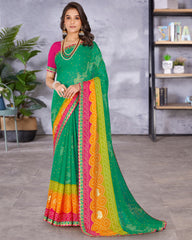 Vishal Prints Jade Green Printed Bandhani Print Chiffon Saree With Foil Print And Fancy Border