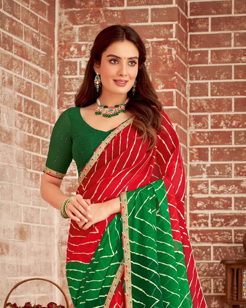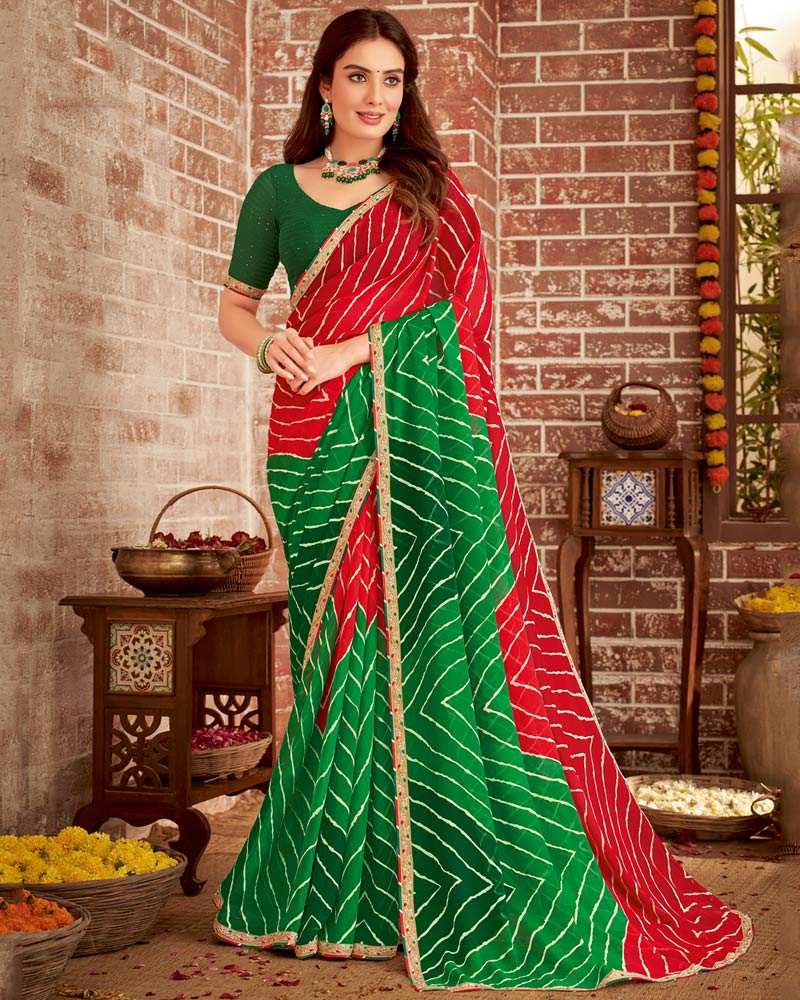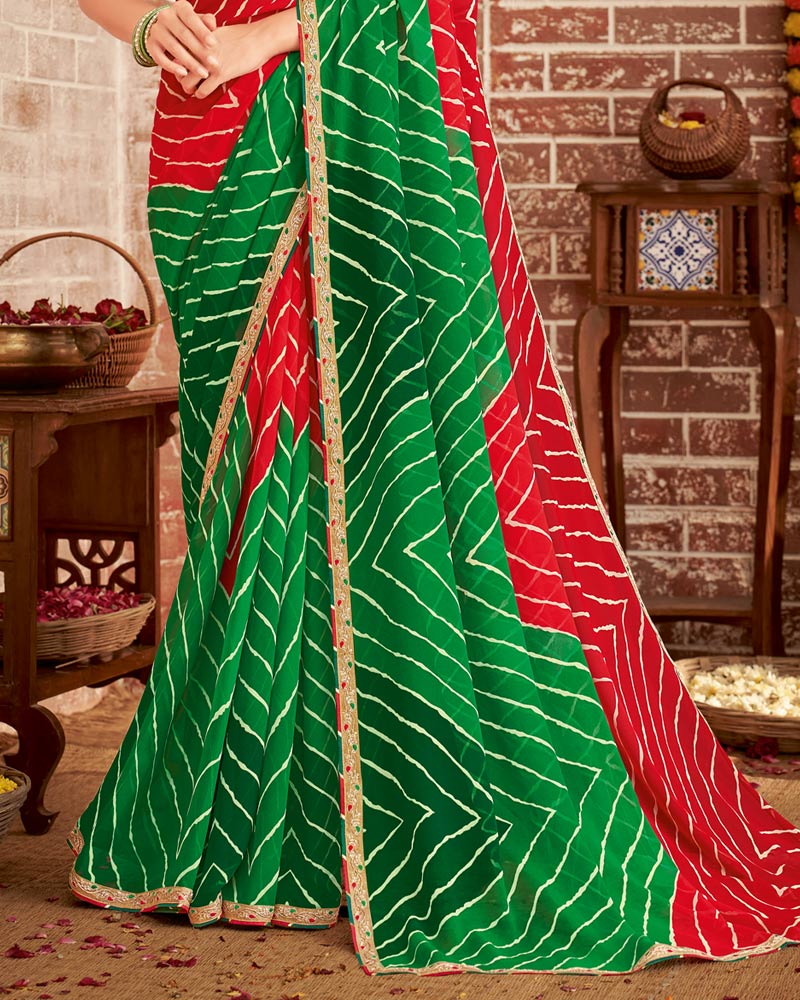 Vishal Prints Jade Green Printed Georgette Saree With Fancy Border