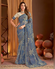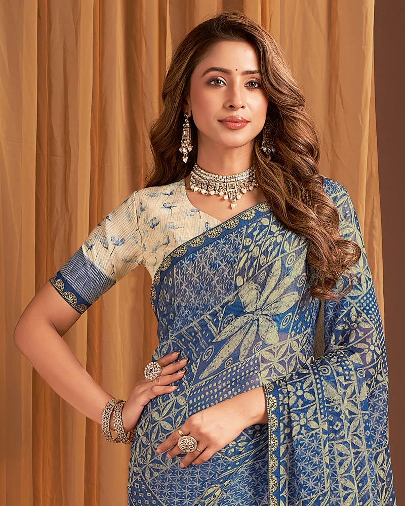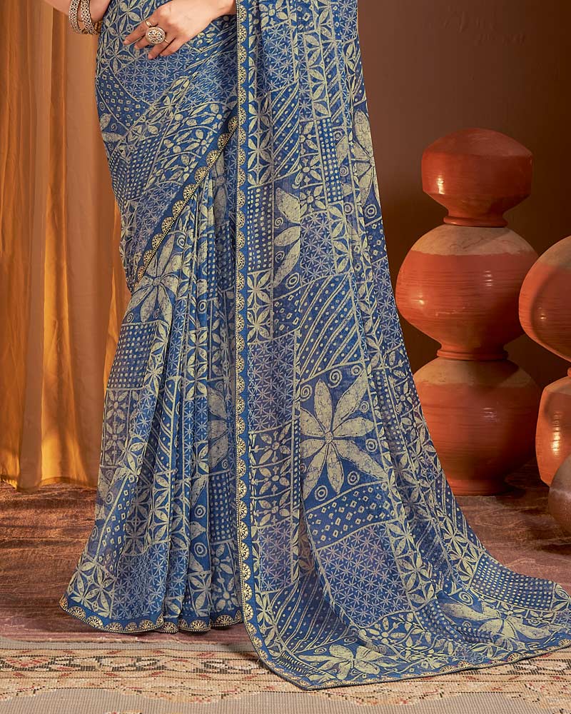 Vishal Prints Kashmir Blue Printed Chiffon Saree With Fancy Border