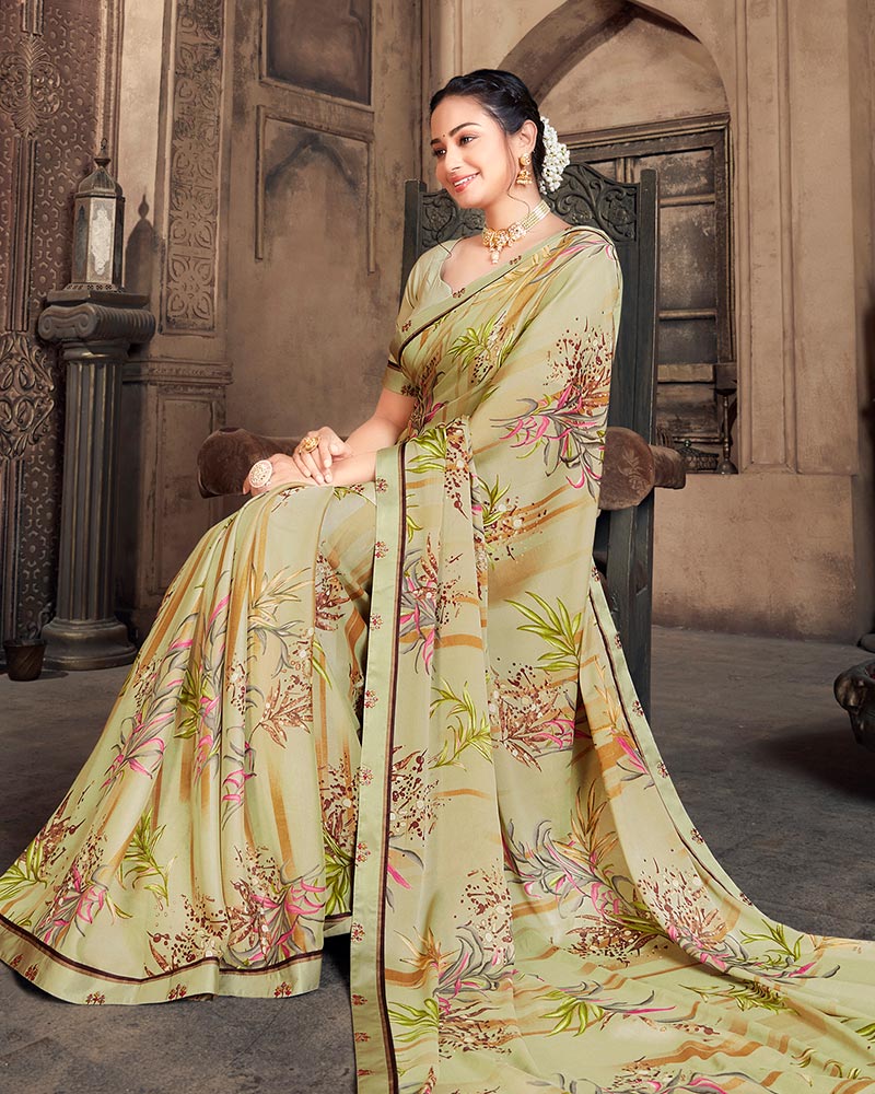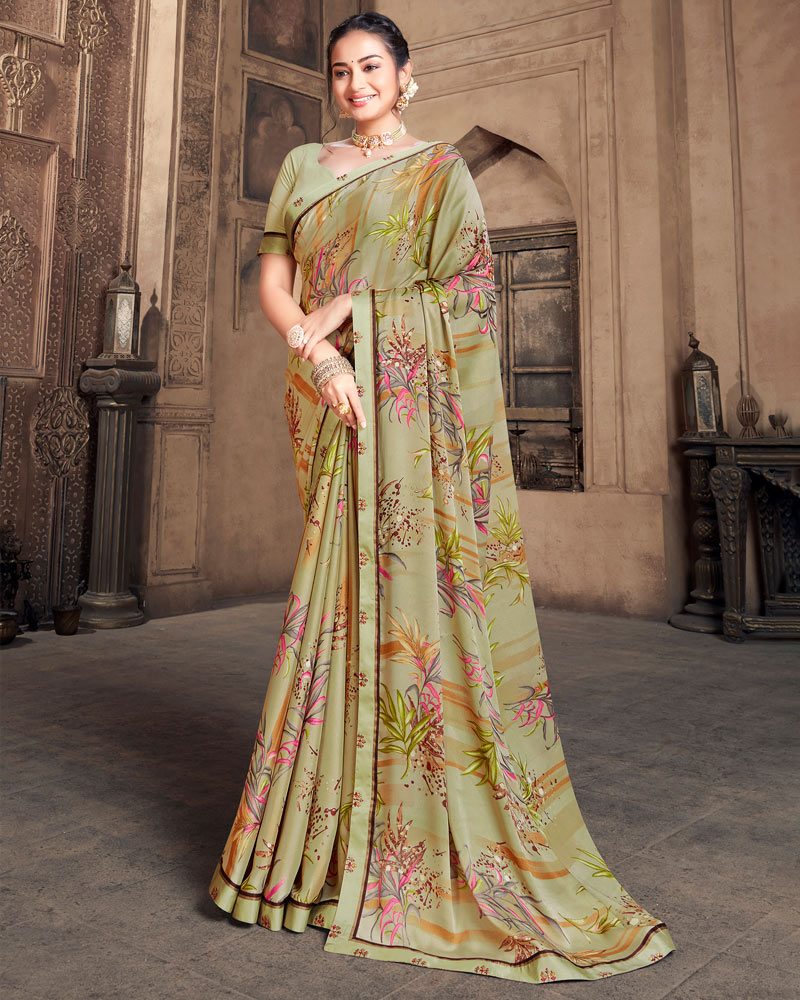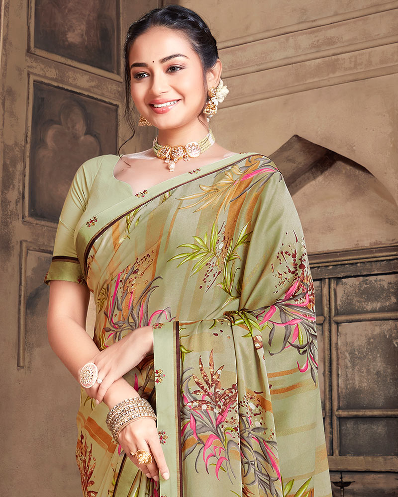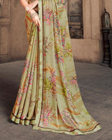 Vishal Prints Khaki Green Criva Crepe Saree With Zari Border