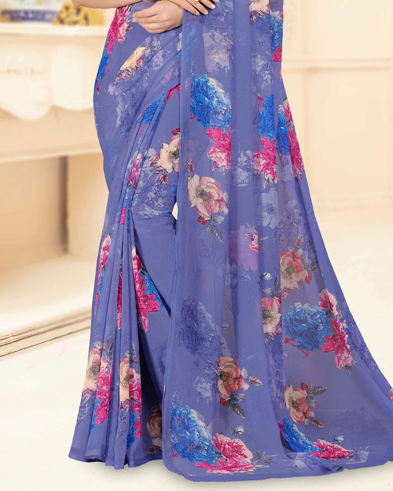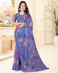 Vishal Prints Kimberly Violet Digital Print Georgette Saree