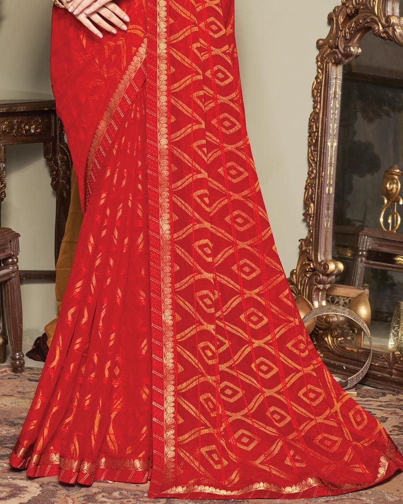 Vishal Prints Lava Red Patterned Brasso Saree With Fancy Zari Border