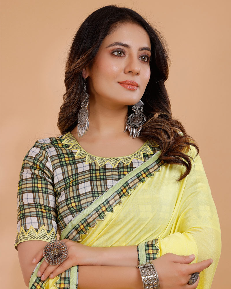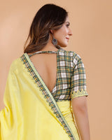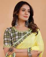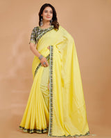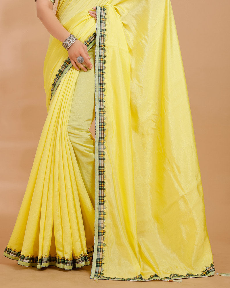 Vishal Prints Lemon Yellow Tussar Silk Saree With Fancy Border And Tassel