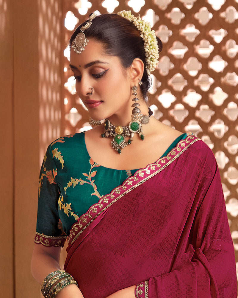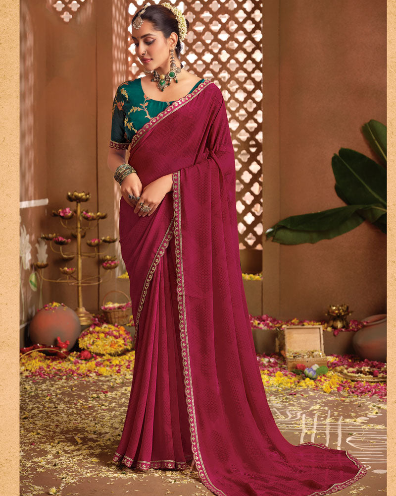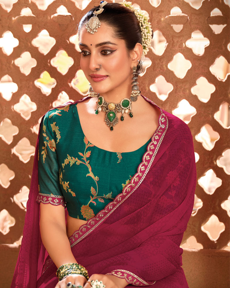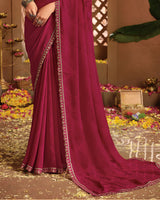 Vishal Prints Light Burgundy Printed Georgette Saree With Fancy Border