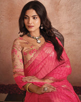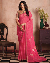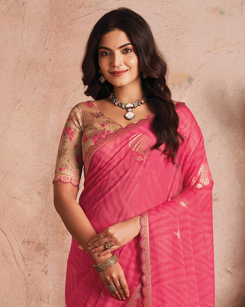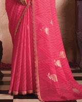 Vishal Prints Light Carmine Pink Printed Luxury Chiffon Saree With Foil Print And Cut Work Embroidery Border