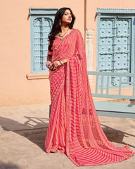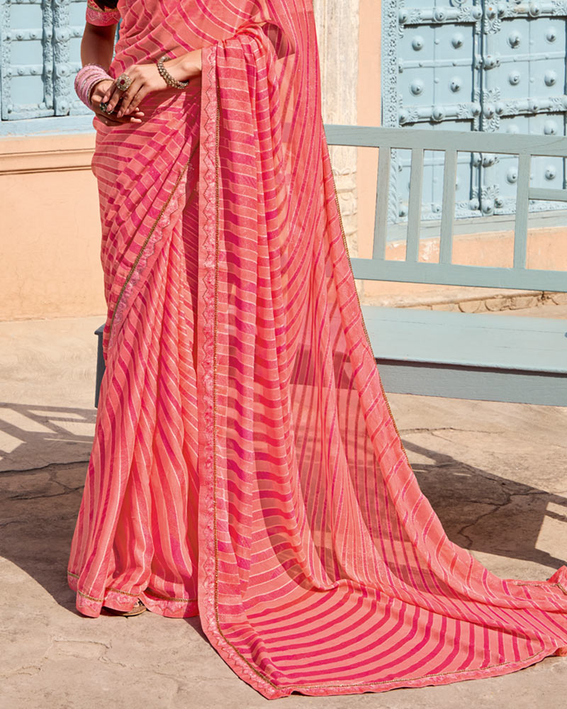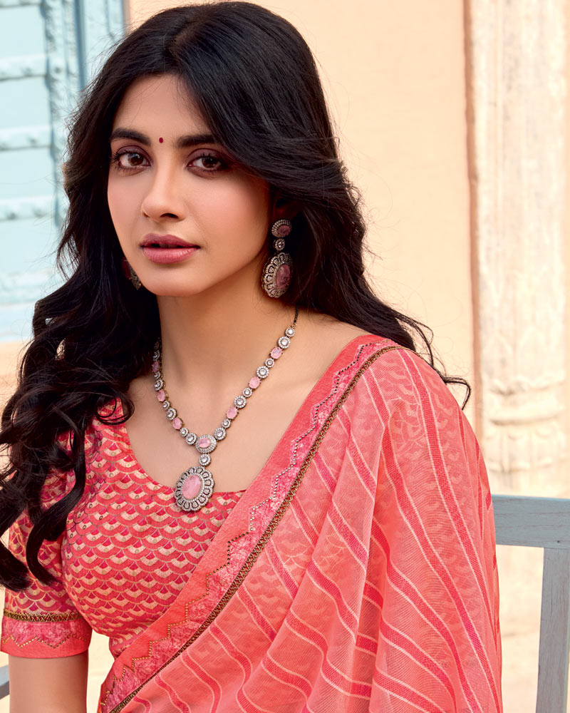 Vishal Prints Light Coral Printed Brasso Saree With Fancy Border
