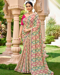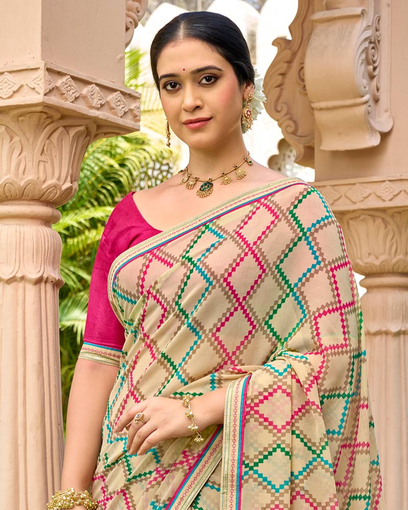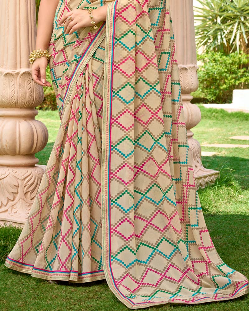 Vishal Prints Light Fawn Printed Georgette Saree With Embroidery Border