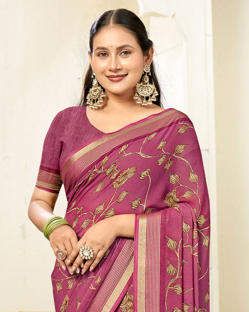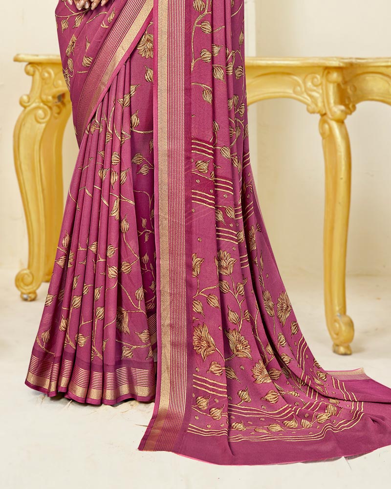 Vishal Prints Light Maroon Printed Criva Crepe Saree With Weaved Viscose Patta