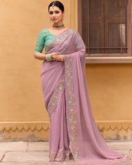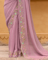 Vishal Prints Light Mauve Designer Chiffon Saree With Diamond Work And Cut Work Embroidery Border
