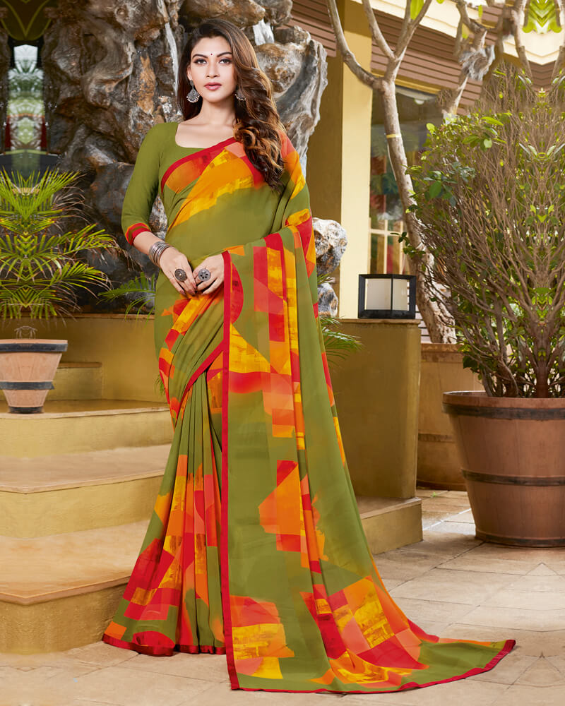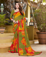 Vishal Prints Light Mehandi Green Digital Print Georgette Saree With Piping