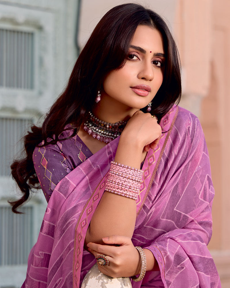 Vishal Prints Light Plum Printed Brasso Saree With Fancy Border
