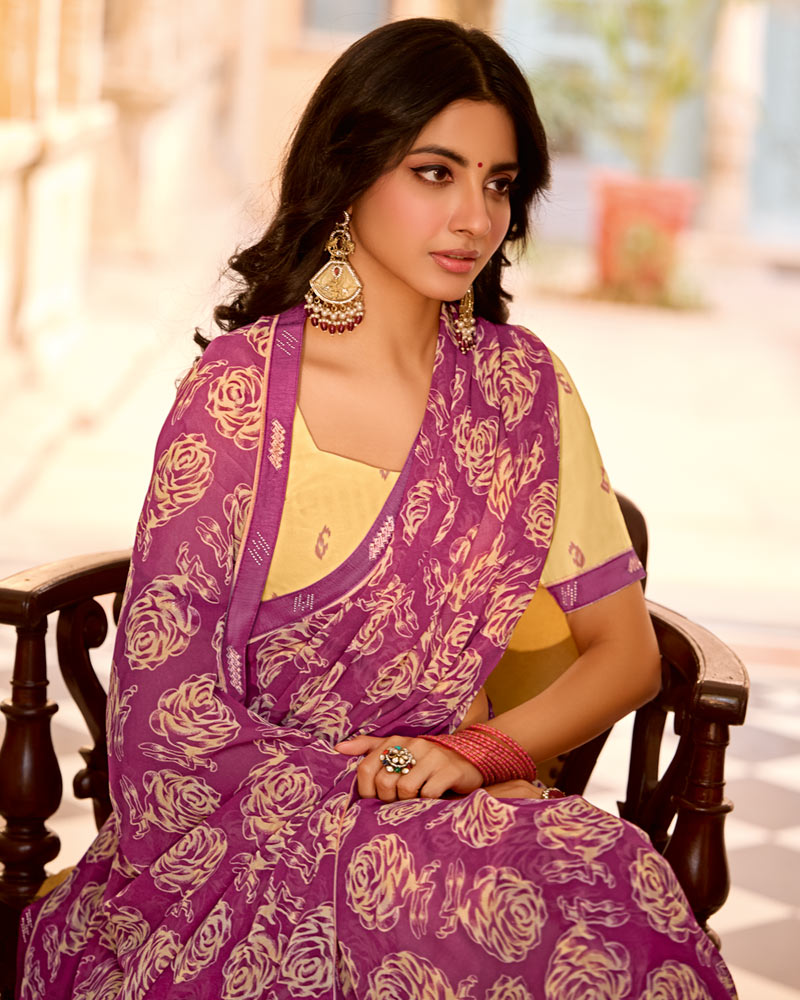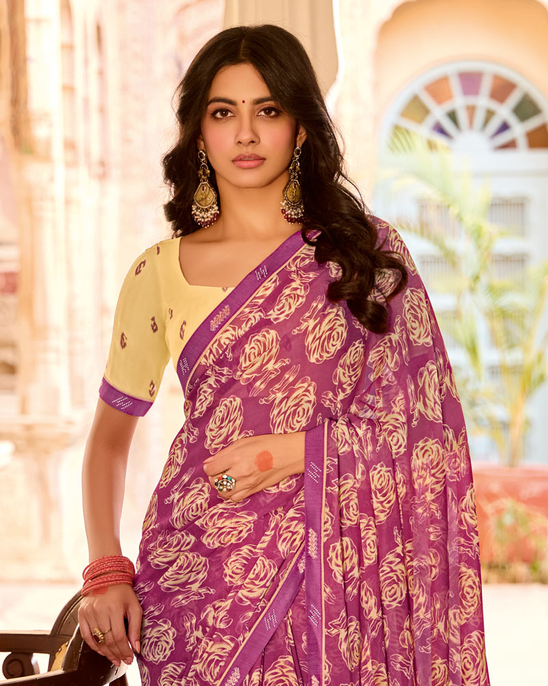 Vishal Prints Light Plum Printed Georgette Saree With Fancy Border