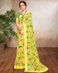 Vishal Prints Light Yellow Printed Georgette Saree With Border