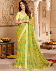 Vishal Prints Light Yellow Printed Georgette Saree With Fancy Border