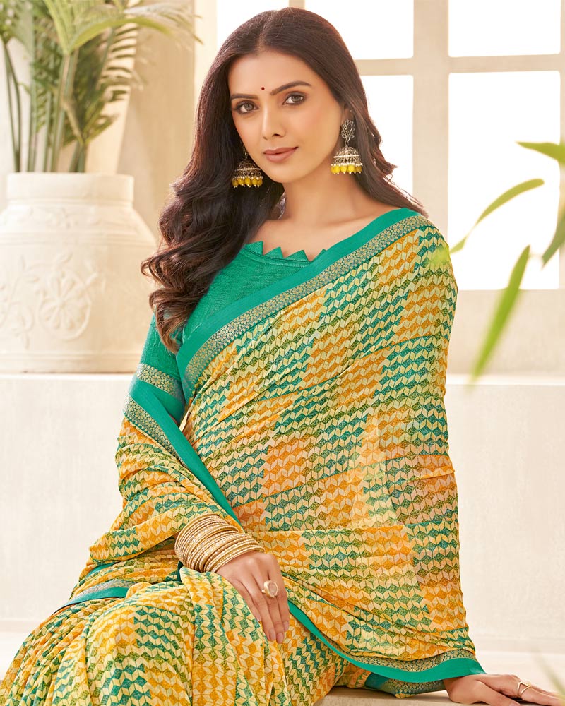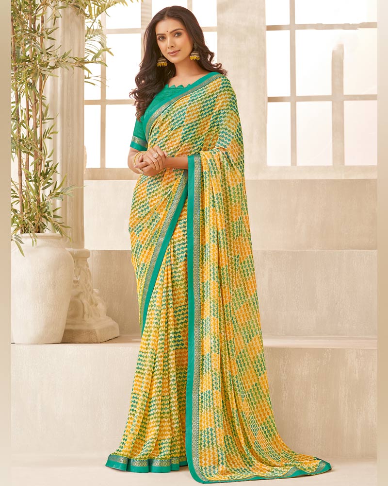 Vishal Prints Light Yellow Printed Georgette Saree With Fancy Border
