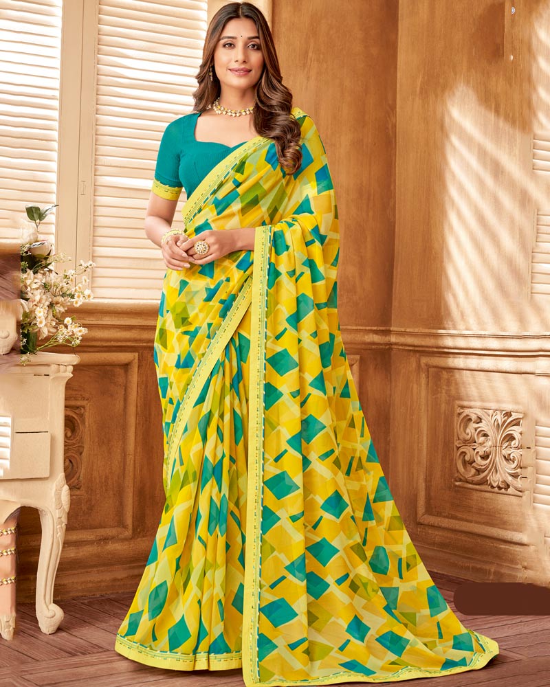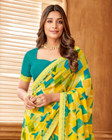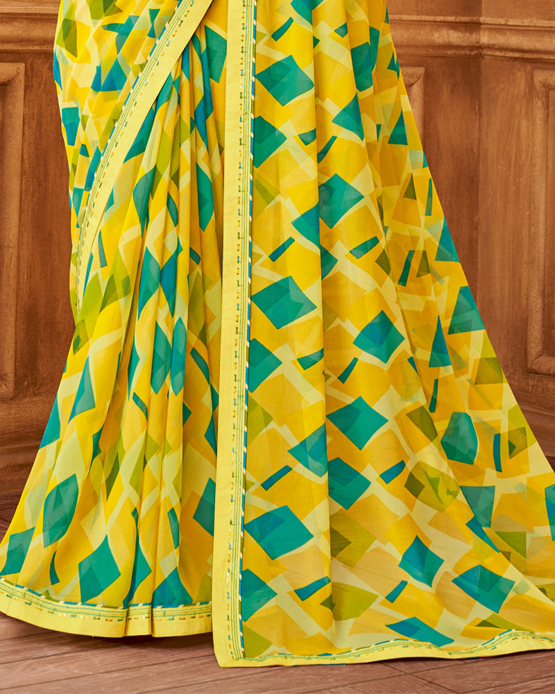 Vishal Prints Light Yellow Printed Georgette Saree With Fancy Border
