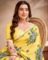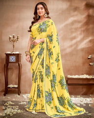 Vishal Prints Light Yellow Printed Patterned Georgette Saree With Fancy Border