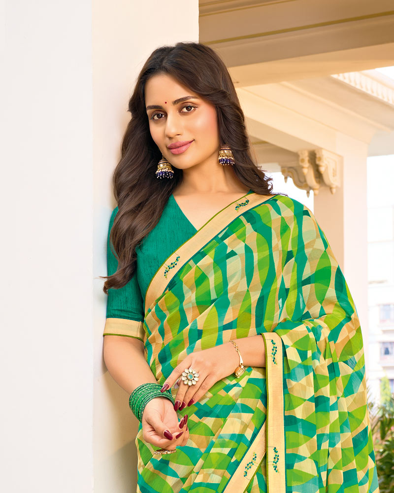 Vishal Prints Lime Green Printed Chiffon Saree With Fancy Border