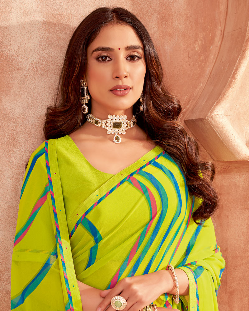 Vishal Prints Lime Green Printed Georgette Saree With Fancy Border