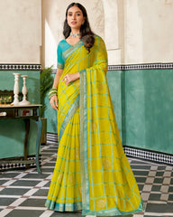 Vishal Prints Lime Yellow Designer Fancy Chiffon Saree With Diamond Work And Fancy Border